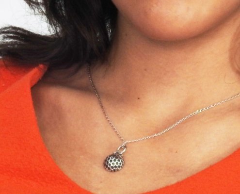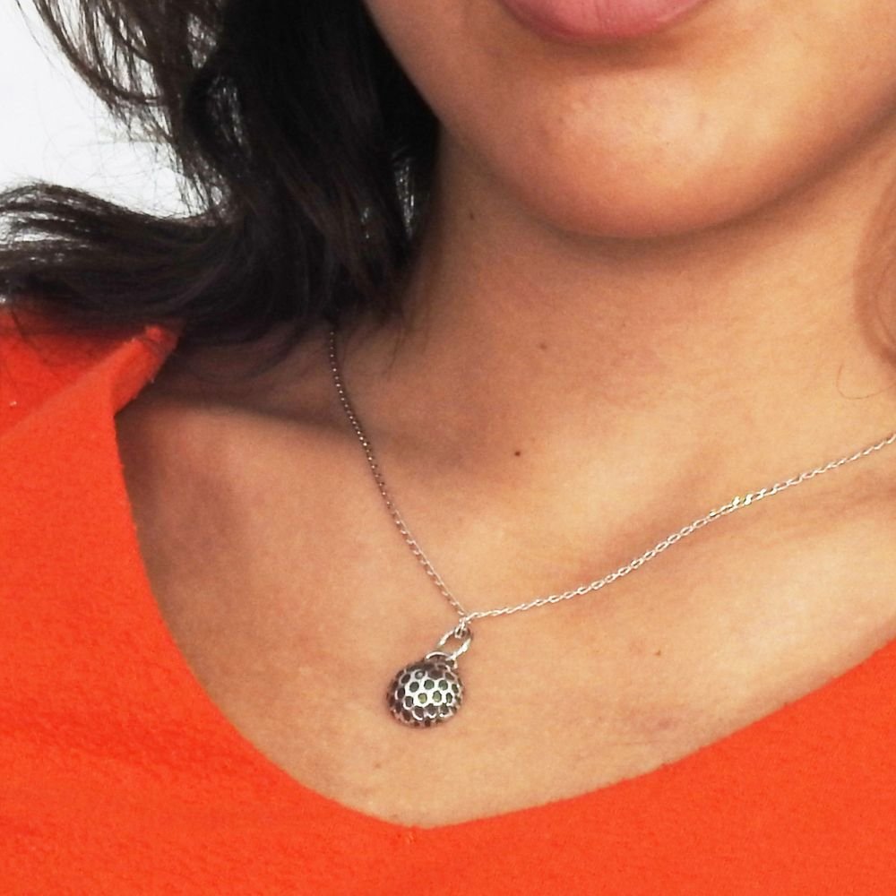 Colgante Media Esfera elaborado en plata 9.25 con una cadena modelo Matiné de 40 cm.