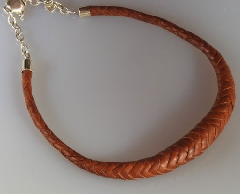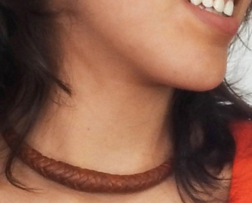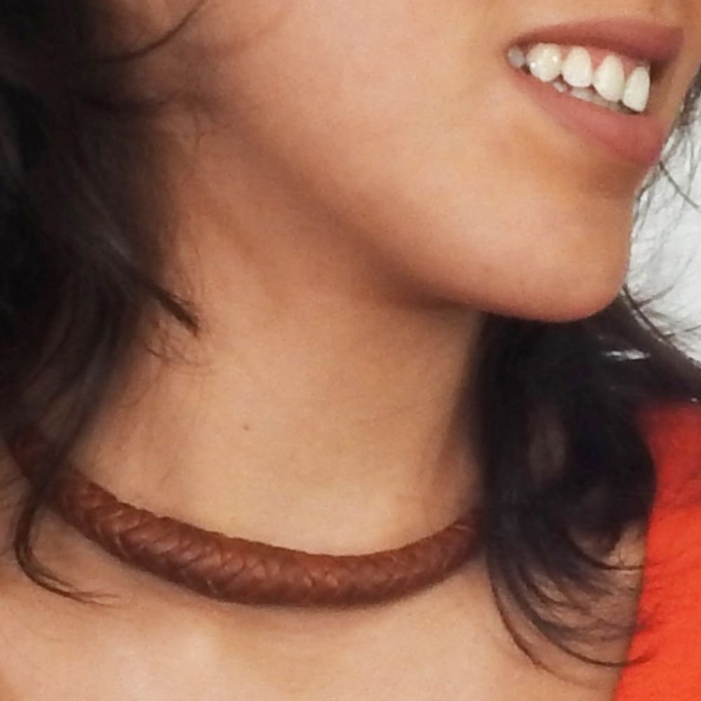 Gargantilla de piel tejida elaborada a mano.