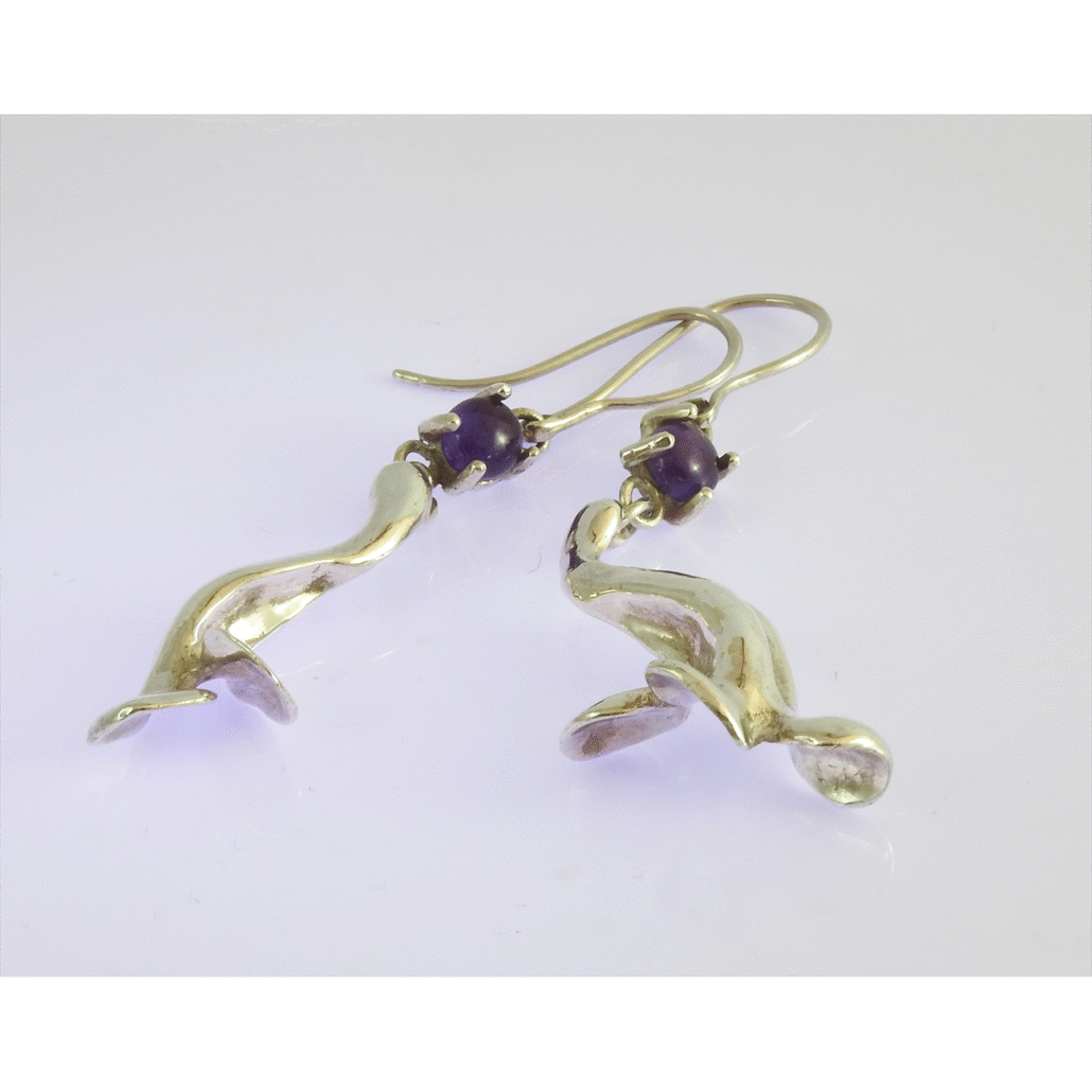 Con un diseño innovador estos aretes de plata 9.25 y amatistas están inspirados en el inicio de la primavera en la Ciudad de México que se inunda de jacarandas en flor que cubren las aceras y los parques con intensos mantos lilas de flores de jacaranda. La amatista es una piedra preciosa que destaca por sus tonos violáceos, se cree que posee propiedades que dan osadía a quien la porta.