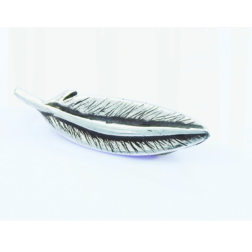 Dije Pluma elaborado en plata 9.25. En diversas culturas las plumas de ave son consideradas como un signo de buena suerte asociado también con la libertad del vuelo y la forma de hablar del viento.