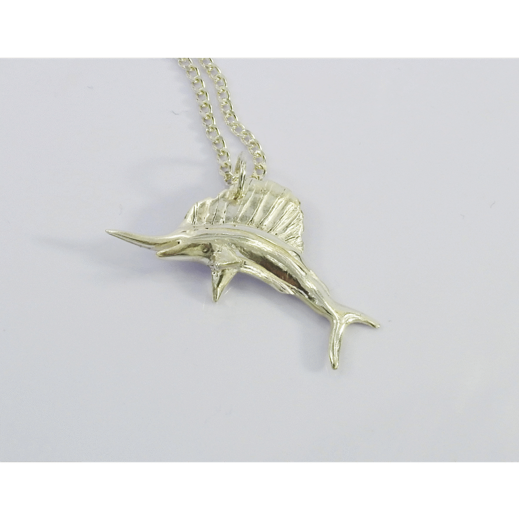 La figura Pez Vela forma parte de nuestra serie Especies Marinas, diseñada por MonPal pensando en los amantes del mar que gozan de su alegre ambiente. El colgante y su cadena modelo Matiné de 54 cm de largo están elaborados con plata 9.25.