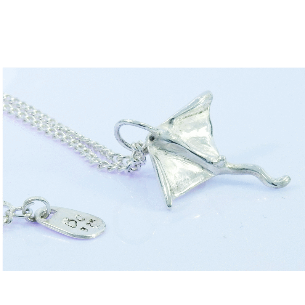 La pieza Mantarraya forma parte de nuestra serie Especies Marinas diseñada por MonPal pensando en los amantes del mar que gozan de su alegre ambiente. Tanto el colgante como la cadena modelo Matiné de 54 cm de largo están elaborados con plata 9.25