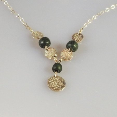 Collar en plata 9.25 con cinco mandalas y tres jadeítas verdes.