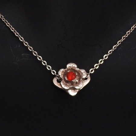Collar elaborado en plata 9.25, lleva un colgante de flor con un ópalo al centro.