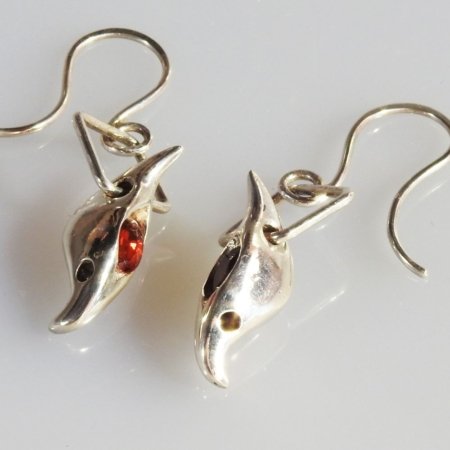 Aretes de plata 9.50 en forma de Zig Zag con un granate al centro.